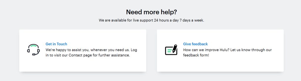 Hulu nu ofera in mod public o adresa directa de email pentru suport, dar comunicarea se face prin formularele de contact disponibile in contul de utilizator, dupa autentificare, sau prin chat-ul online.